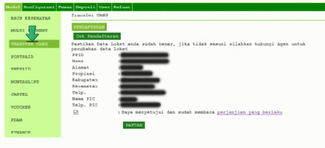 Langkah ke 2 adalah melakukan pendaftaran Modul Transfer uang