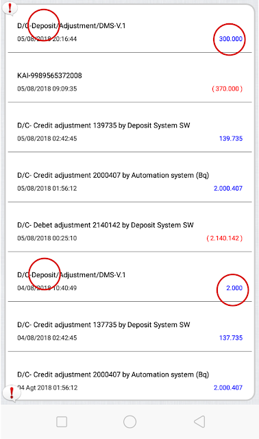 5. Perhatikan bagian kredit (deposit) bagian kredit ini berisi nominal deposit anda dan fee anda termasuk refund/balik saldo.
