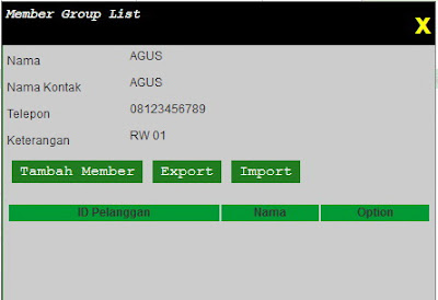4. Klik Tambah member untuk memasukkan no pelanggan secara manual, klik import untuk impor data no pelanggan yang sudah ada (sudah diketik di excel atau word atau notepad).
